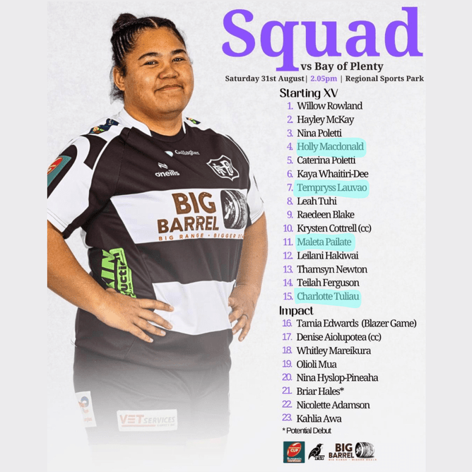 We are proud to announce that our 1st XV players Tempryss Lauvao, Maleta Pailate, and Charlotte Tuliau, along with teacher Holly Macdonald, have been selected to start in the upcoming match against Bay of Plenty. The game will take place this Saturday 31 August at the Regional Sports Park with kick-off scheduled for 2:05 pm. We wish our players the best of luck and encourage everyone to come out and support the team!