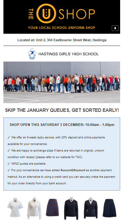 The Uniform Shop is open this Saturday