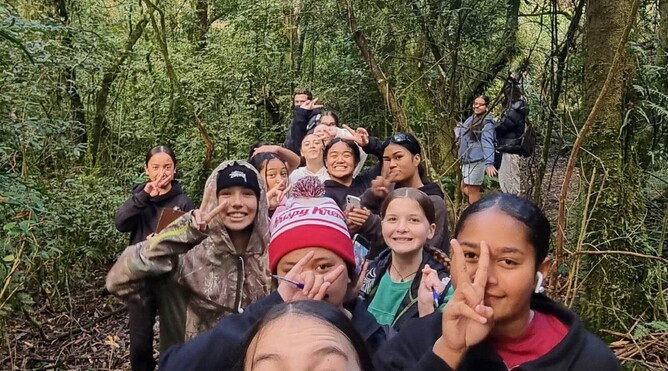 The two Exploring the Great Outdoors Hubs spent the day at A'Deane's Scenic Reserve on Wednesday. We saw one of the oldest and largest Totara left in New Zealand, made scientific observations on the flora and fauna and some of the girls even found the native tree/plant they are studying. The girls also used the time to take photos to create posters about looking after the environment
