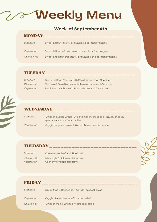 Menu for Week 8
