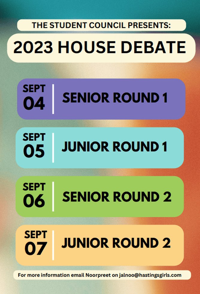 - House Debating, Junior Round 1: Blue vs Purple, Green vs Gold