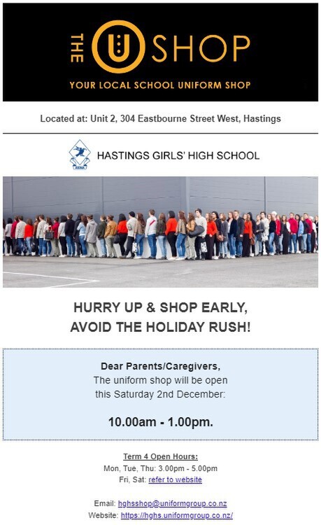 The school day will end straight after Prize giving. The Flaxmere Bus will run at 12.30pm and all other buses at normal times.