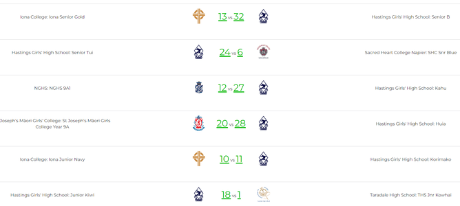 HGHS Junior Kahu vs Napier Girls' High 108-0 to HGHS