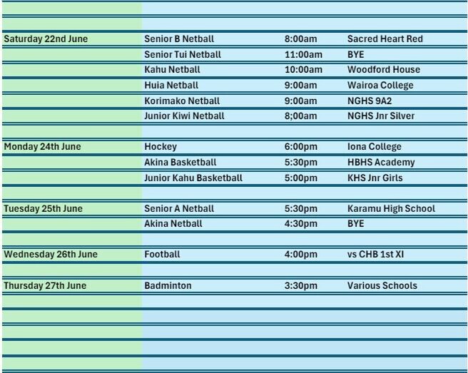 The Senior A had a great win. They played a smart game, shooting percentages were good but defensively the team stepped up and came up with brilliant gains across the court. Great ākina spirit was shown!!! Our Ākina side had a consistent game of Netball this week. They came out strong from the start and showed great intensity for a full game. A good win by the team against Wairoa College Senior A, 41-31.