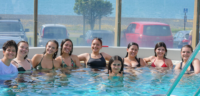 After a morning of exploration, the students headed to Ocean Spa to unwind and soak in the thermal pools. For many, this was a completely new experience, something they had never had the chance to do back home. As they relaxed with the stunning ocean views, the girls reflected on how lucky they were to experience such a special day.