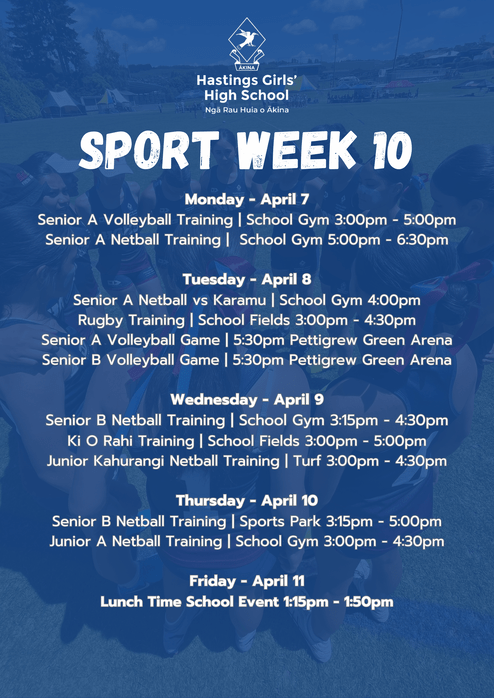 Thank you once again for your ongoing support throughout the term. We’re proud of the way our students continue to represent the values of our kura and look forward to finishing the term strong.