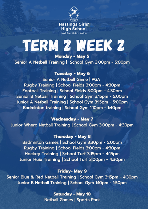 Winter sports also kick off this week, with a big day tomorrow as all of our netball teams begin their grading matches. We wish all teams the very best of luck. A reminder to our students and whānau to show respect on and off the court— represent our kura with pride, and be great sports.