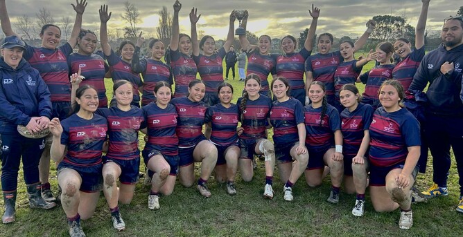 Last weekend, our 1st XV Rugby team travelled to Feilding High School for the PTS Cup Finals to take on Napier Girls’. Despite the poor weather and a very muddy surface, the girls played some fantastic rugby. Leading 24-0 at halftime, they kept the pressure on throughout the game. Napier came out strong in the second half, scoring two tries in the corner, but our girls’ relentless attack saw them cross the line four more times. When the final whistle blew, the score was 50-10, crowning our girls as the inaugural winners of the competition.