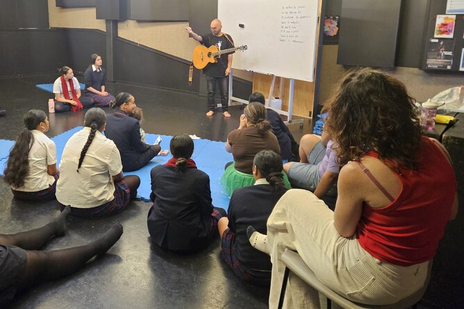 On Tuesday, students immersed themselves in a transformative Māori songwriting workshop. They gained a clearer understanding of waiata structure, drawing inspiration from powerful pūrākau such as the story of Rongomaiwahine and Kahungunu.