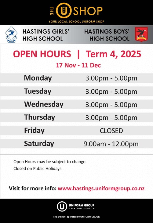 While seniors continue with examinations, our Year 9 and 10 students have been outstanding in upholding the kawa o te kura and kawa o te akomanga. As we move into the final weeks of the term, learning remains our priority, and we appreciate whānau reinforcing the importance of attendance, punctuality, and readiness for learning.