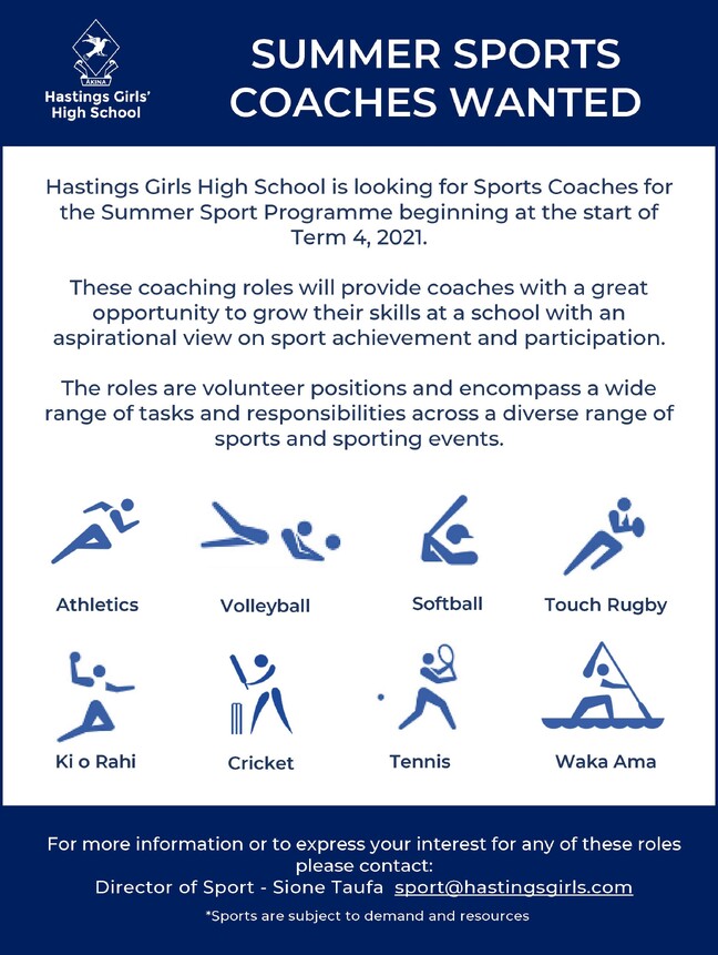 note: Game will be livestreamed on the Hastings Girls High School Facebook page