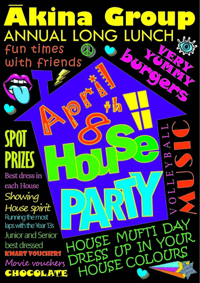 We are excited to start Term 2, returning to a normal timetable and Ākina Groups, but before we do, we want to go out of Term 1 with a bang! On Friday 8 April, we will be holding a Long Lunch for our students, with plenty of fun and spot prizes planned. Students will come dressed in House colours and enjoy music and sports over the lunch break. We encourage all students who have been at home distance learning, to come and reconnect with you fellow class mates and Ākina group members ahead of their return in Term 2.