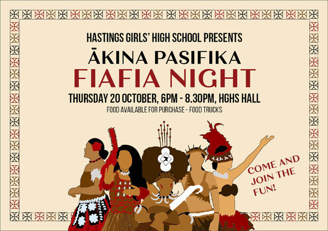 - 20 October - Ākina Pasifika Fiafia Night (6pm - 8.30pm HGHS School Hall)